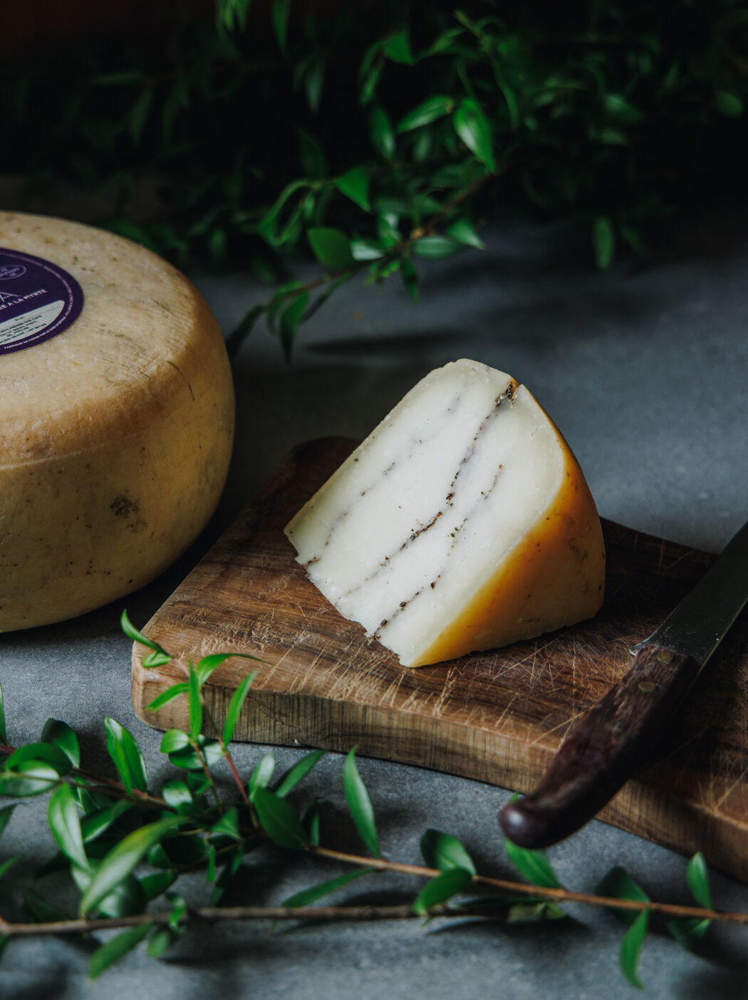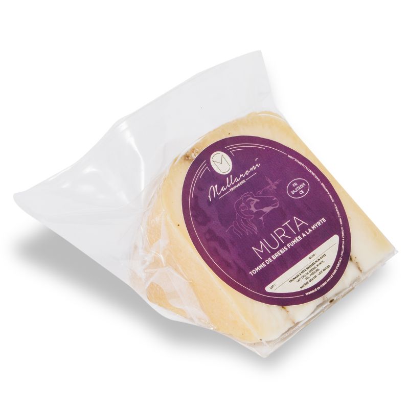 A Murta, tomme pur brebis légèrement fumée avec des insert de myrtes, délivre des notes herbacées et légèrement taniques qui se marient à la pâte jeune et douce qui révèlent des notes de brebis.